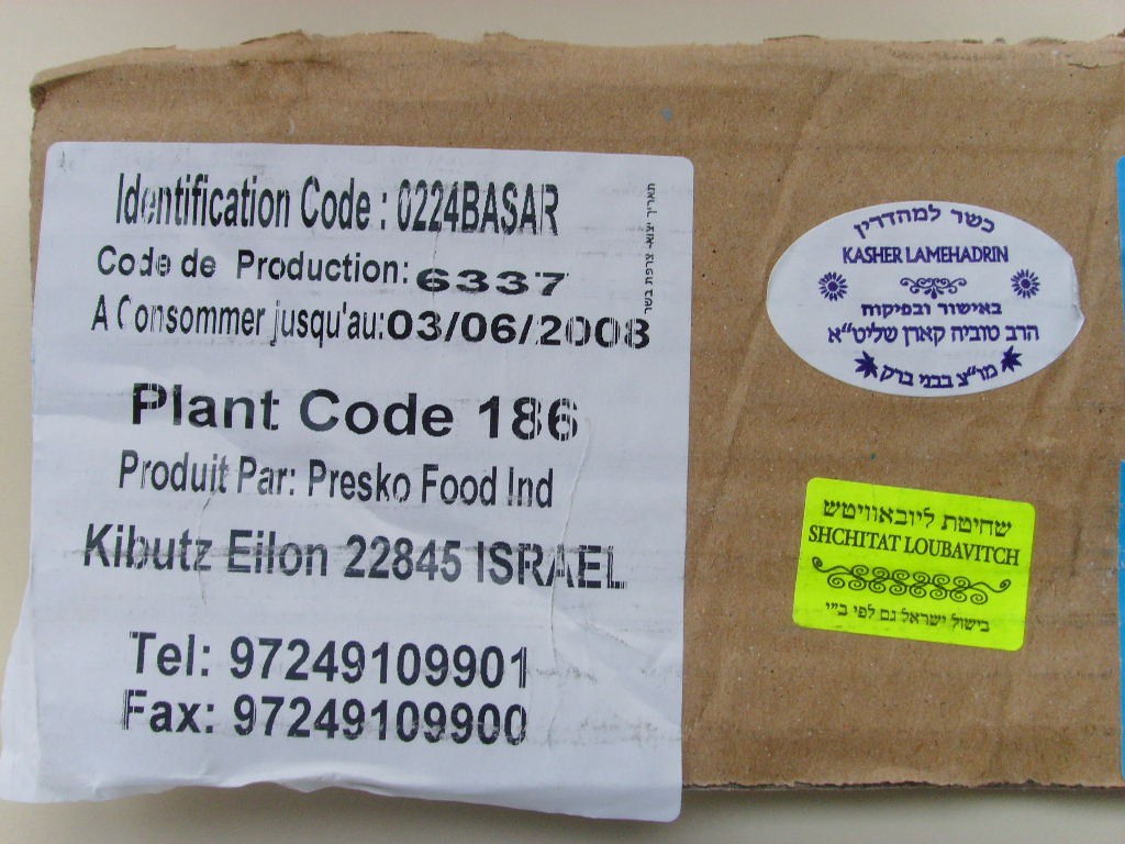 congelées. Ces produits, dont certains préparés en Novembre 2006 avec une validité surprenante de deux ans pour de la volaille importée d'Israël, sont estampillés "Cacher le Pessa'h" mais contiennent du dextrose, un dérivé d'hydrolysat d'amidon, qui ne saurait être Cacher le Pessa'h, d'autant que les abattoirs israéliens commencent rarement à travailler pour Pessa'h en Novembre. Nous interrogeons une nouvelle fois le Rabbinat. |