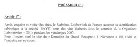 autorisation l'estampille du Rabbinat Loubavitch. Il nous rappelle