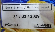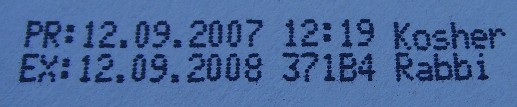 fabrication, dont la date de validité est Octobre 2009. Nous interrogeons ce jour Le Rabbin M. Haddad. 5 Février 2008. |