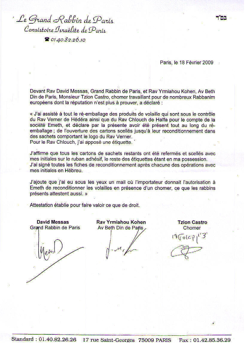 | Mis en ligne le 10 Novembre 2009, après consultation des autorités rabbiniques et de notre conseiller juridique. Pour