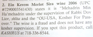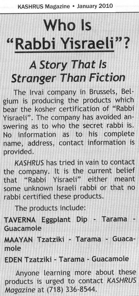 Octobre 2009 - Alerte de Cacherouth du Grand Rabbinat Israélien, N° 4 |