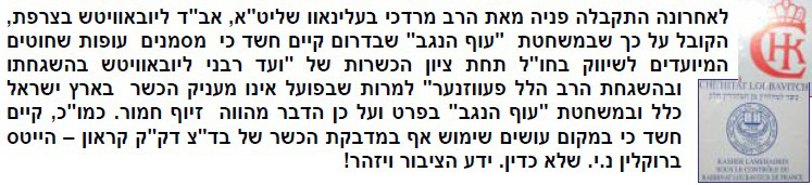 KFC : Kiffer Façon Cacher … Arouts Cheva, Adar 5769 |