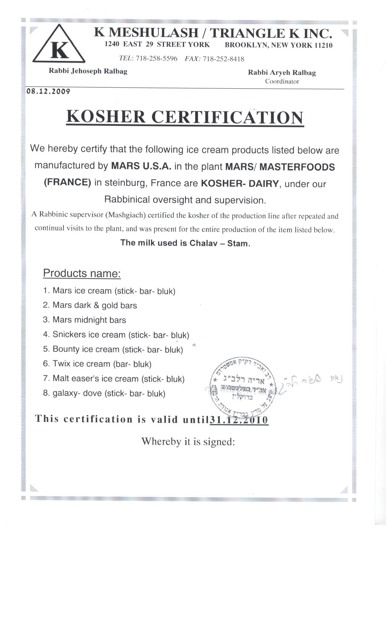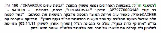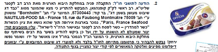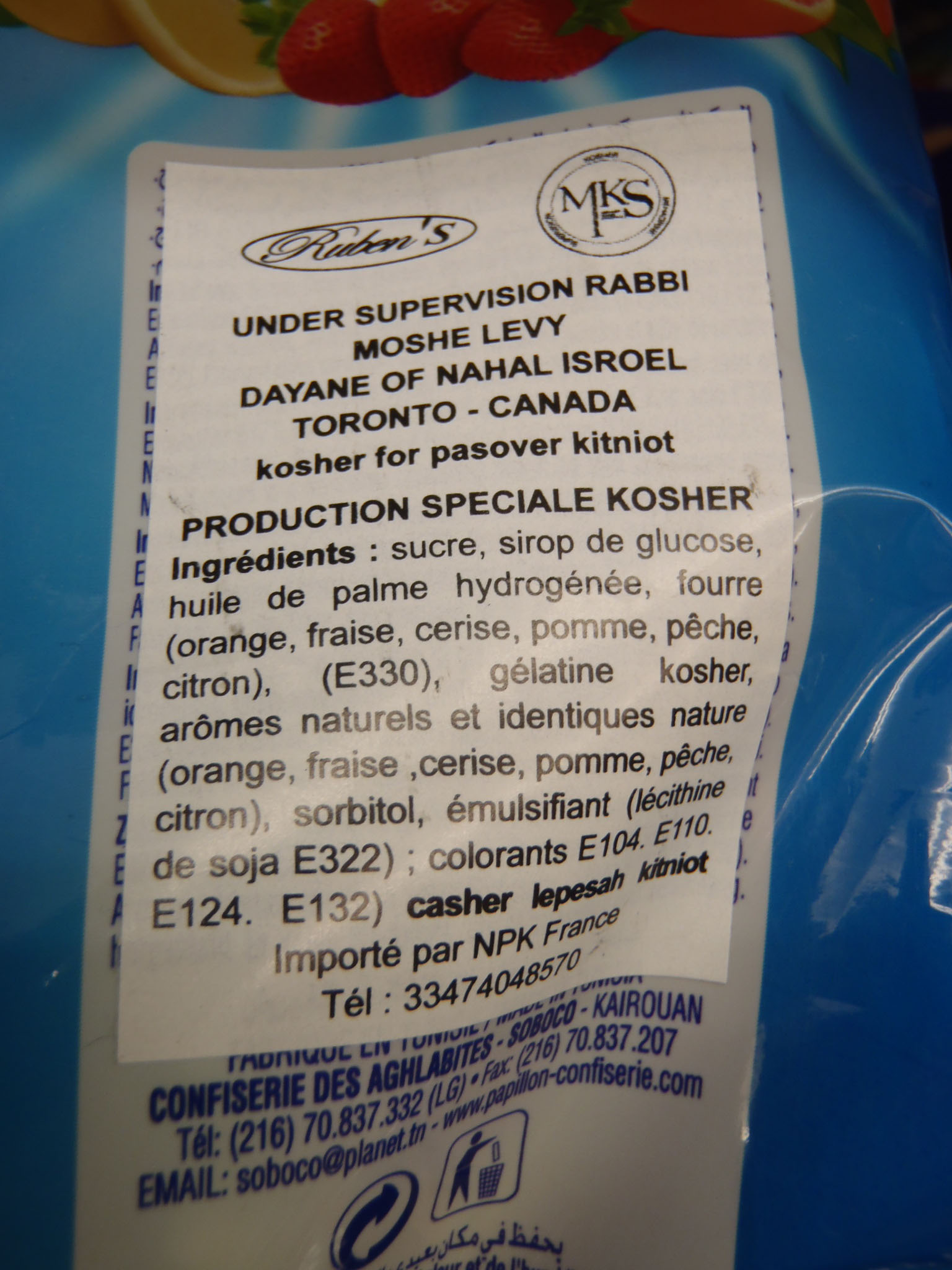pas été fabriquées sous sa surveillance. Il reste à comprendre pourquoi ce communiqué paru en Israël n'est pas popularisé en France, où ce produit est en rayon. |