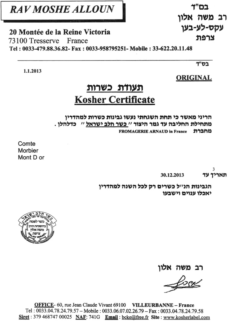 en mai 2010 qu'un fromage cacher au lait non