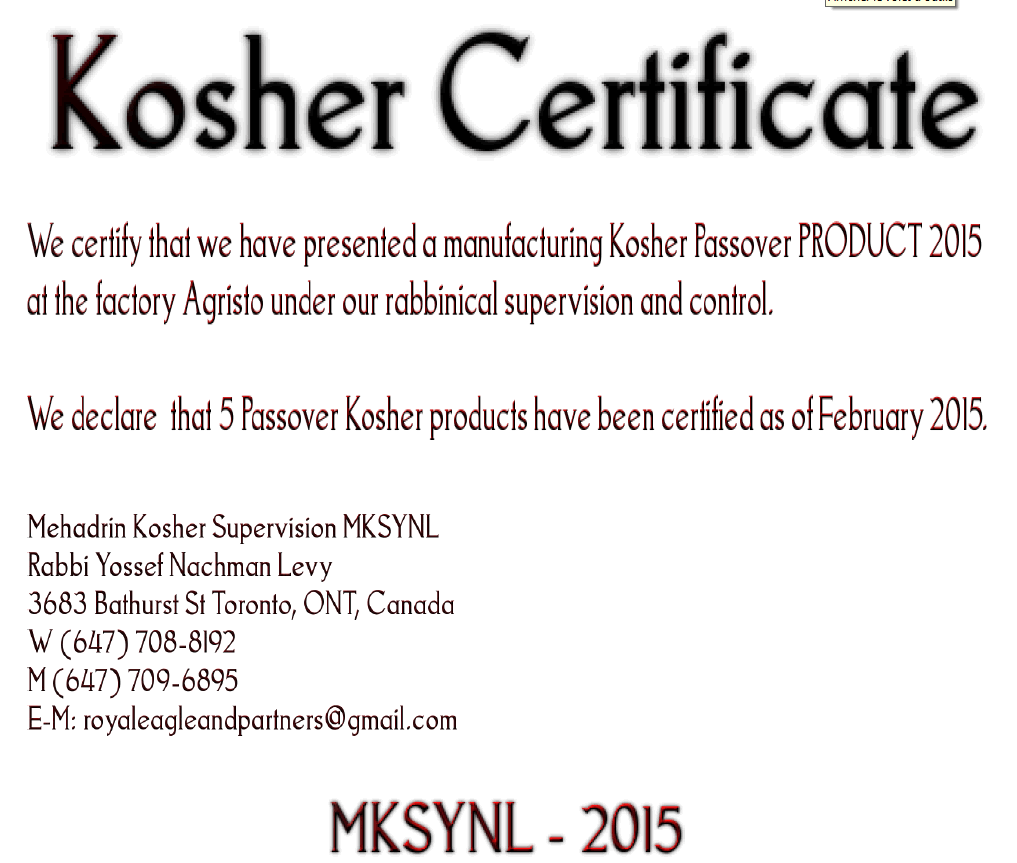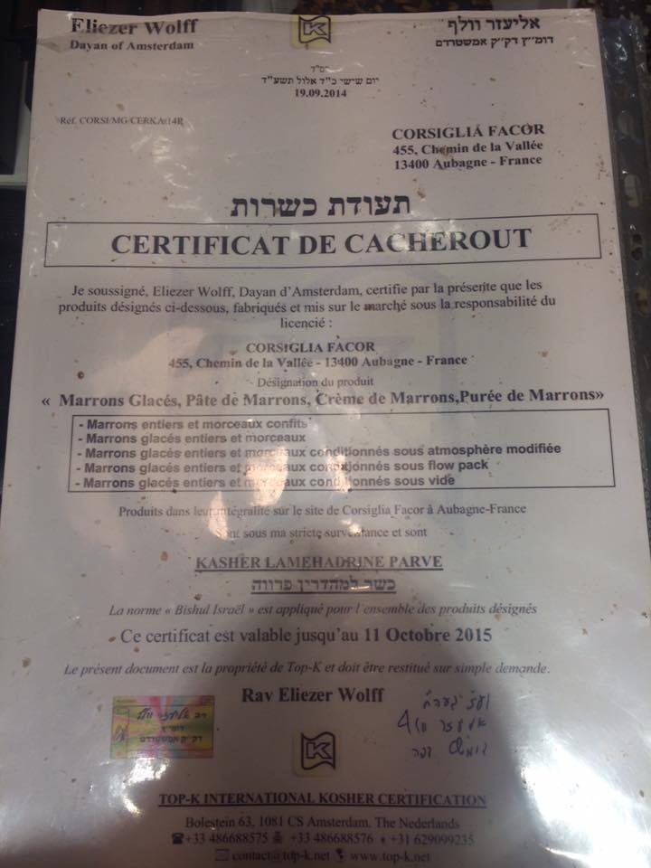 a bien grandi depuis, vos courriers nous le montrent. Le paysage électronique de la cacherouth a lui aussi bien grandi, et à l'énumération précédente il faut ajouter http://www.certif-ik.fr/, qui se donne pour vocation de mettre en ligne des certificats de cacherouth émanant de diverses autorités rabbiniques, plus sur son espace Facebook (https://www.facebook.com/groups/889708734447608/) que sur le site. Nous sommes surpris par le titre d'Agence de certification dont se pare le site (bien que l'adresse soit aux consommateurs) , sans citer la moindre autorité rabbinique à ce jour. Ca devrait donc venir par la suite. Nombre de ces certificats sont destinés aux professionnels plutôt qu'au panier de la ménagère. Autre