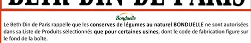 un second avertissement en guise de conclusion: << Il reste évident qu'à priori il faut acheter des produits avec une bonne surveillance rabbinique assurant le contrôle complet des ingrédients, du Halav Israël, du Bichoul Israël et du Afiat Israël. Il n'en reste pas moins que cette liste éditée pour les EI reste le fruit d'une enquête minutieuse que j'ai mené pour permettre à des jeunes, éloignés des centres de Tora et venant de différents horizons, de tenir le minimum commun, ainsi que le définissait Gamzon. >> Et