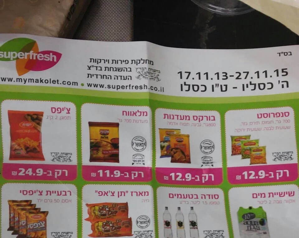 tikchoret » alias Comité Rabbinique pour les média. Son domaine d’action est l’étude et la recherche de moyens de communication « cacher », notamment pour des connections internet et des smartphones qui ne donnent pas accès à des contenus contraires aux lois de la Torah. Lorsque ce logo usuellement apposé sur des écrans de smartphone apparait dans le catalogue d’un épicier pour des borékas, on peut se poser des questions. (Ce catalogue contient un autre bug que nous vous laissons deviner) http://www.bhol.co.il/forums//topic.asp?cat_id=4&topic_id=3105298&forum_id=16810 |