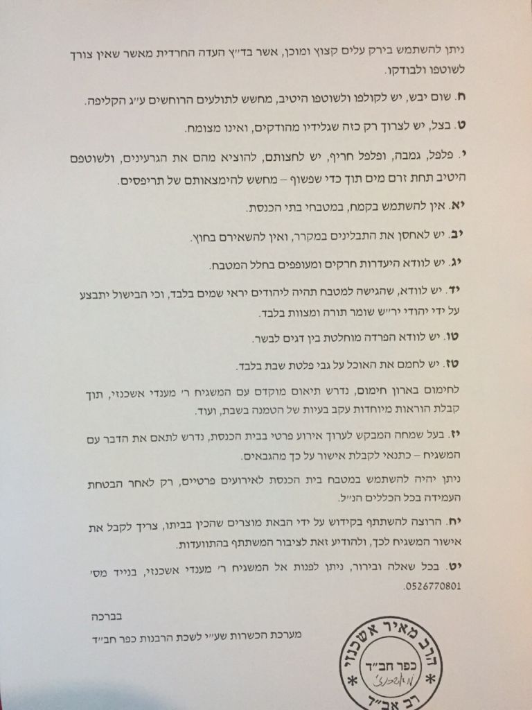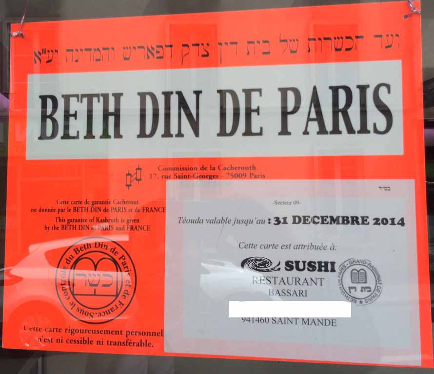 émis par un Rabbinat qui certifie que l'hôtel X a été