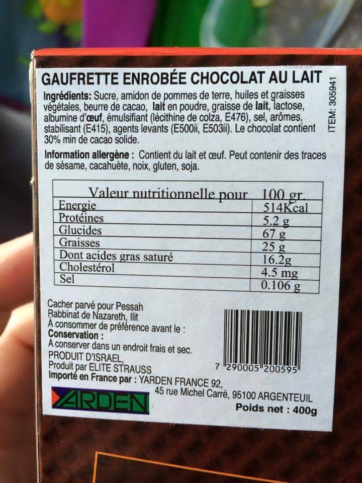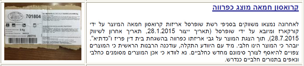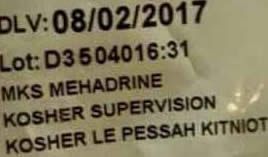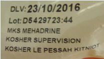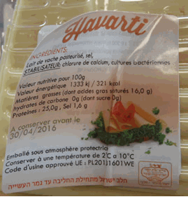 le début de la traite", vendus sans mention d’importateur. Les deux premiers, ne portent pas d’hologramme, ni même mention de la nécessité de l’hologramme pour garantir l’authenticité de la surveillance. Les deux suivants, portent un hologramme, mais sous l’étiquette principale se trouve une autre étiquette en polonais mentionnant une péremption au 31/12/2016. Ces dates tardives indiquent un produit qui a été congelé, et donc décongelé, mention qui devrait être signalée au consommateur. Nous avons interrogé le Badats Beth Yossef sur le suivi de ce produit, et le responsable a bien voulu nous répondre que ces produits sont sous la surveillance du Badats Beth Yossef, la fabrication surveillée par une équipe de surveillants israéliens et le conditionnement (tranchage, emballage, apposition des étiquettes et hologrammes) laissé aux bons soins du surveillant de Mr Arfi, le Rav Moché BenDayan. |