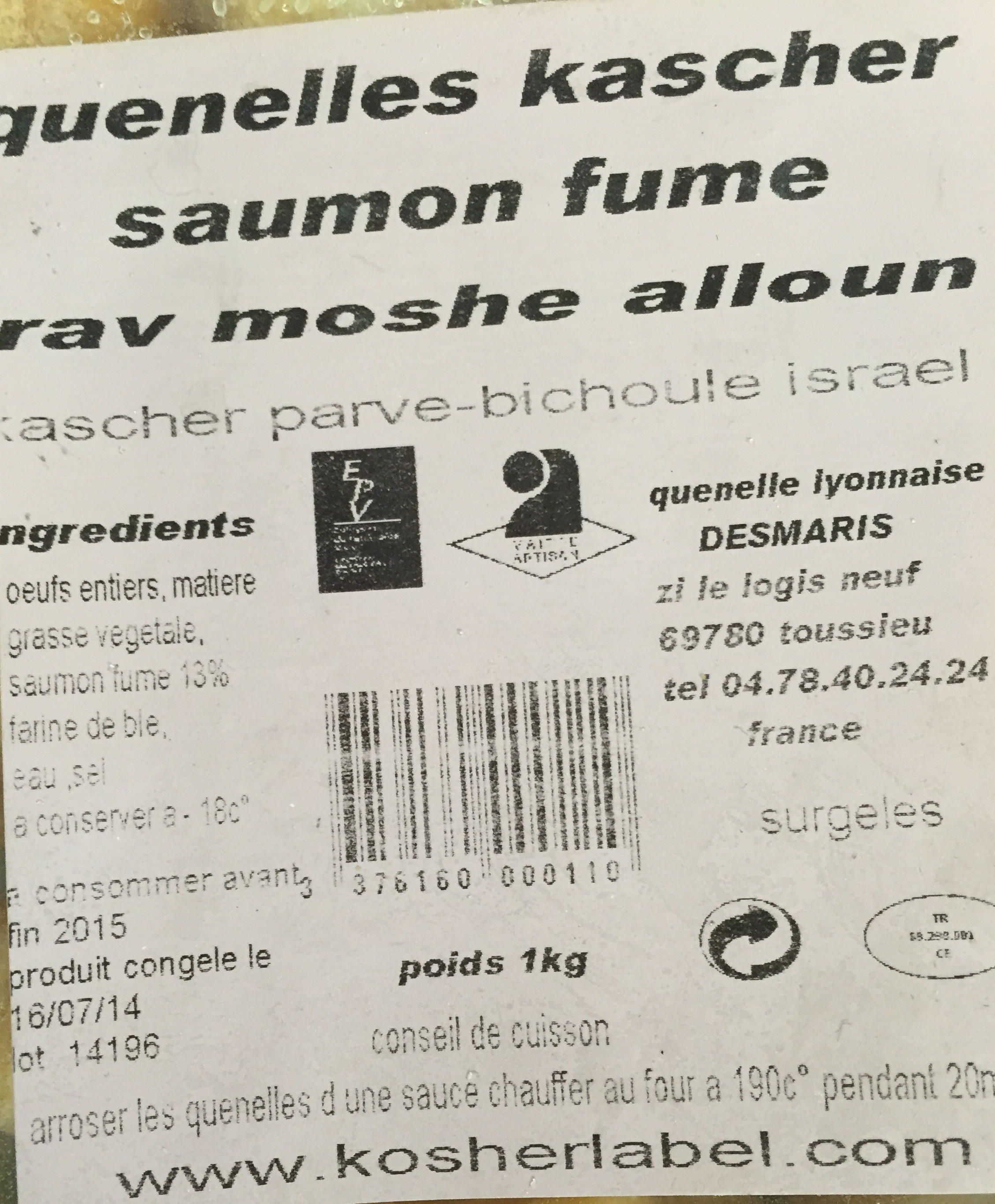 quenelles de brochet achetées en décembre 2014, de la Maison Desmaris,