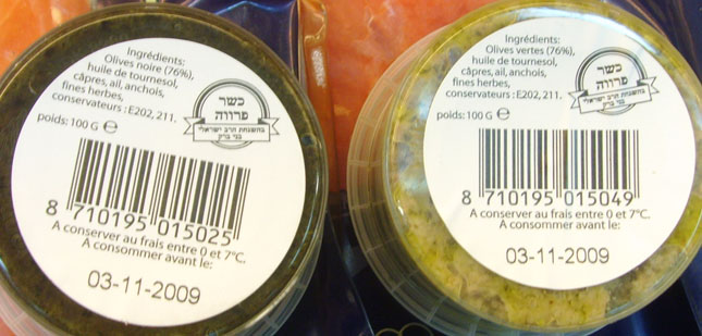 est carrément absent. La péremption du produit est au 14/10/2009. Et pour cette tapenade de Yarden dans ses deux versions. |