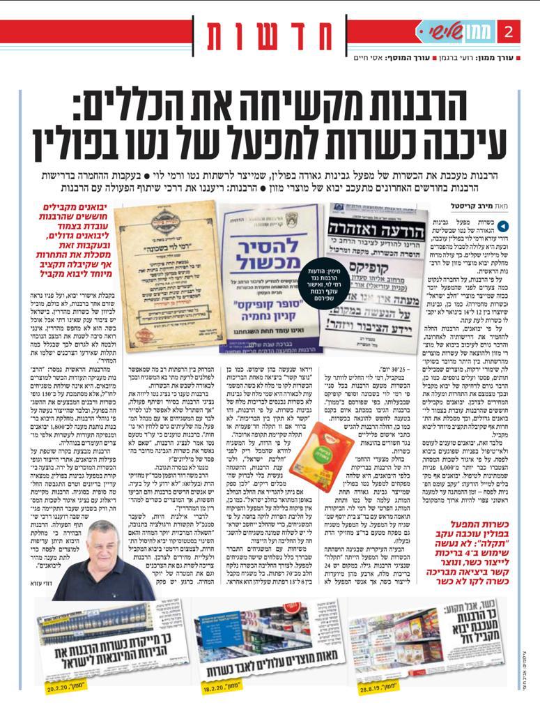 https://www.calcalist.co.il/marketing/articles/0,7340,L-3796214,00.html et http://www.kacher.fr/mlekpol_bby202002%20(1).jpgEn toile de fond, le marché du cacher en Israël, et surtout le marché des importations parallèles destinées aux grandes chaines nationales, marché qui permet de contrer l'importateur unique et tirer les prix vers le bas.