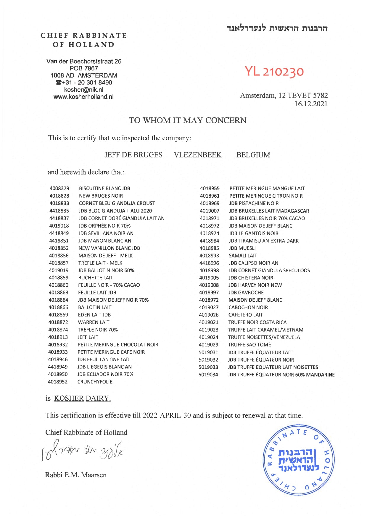 http://www.bet-israel.com/wp/wp-content/uploads/2017/05/Kosher_Lista_2017.pdfDanemark