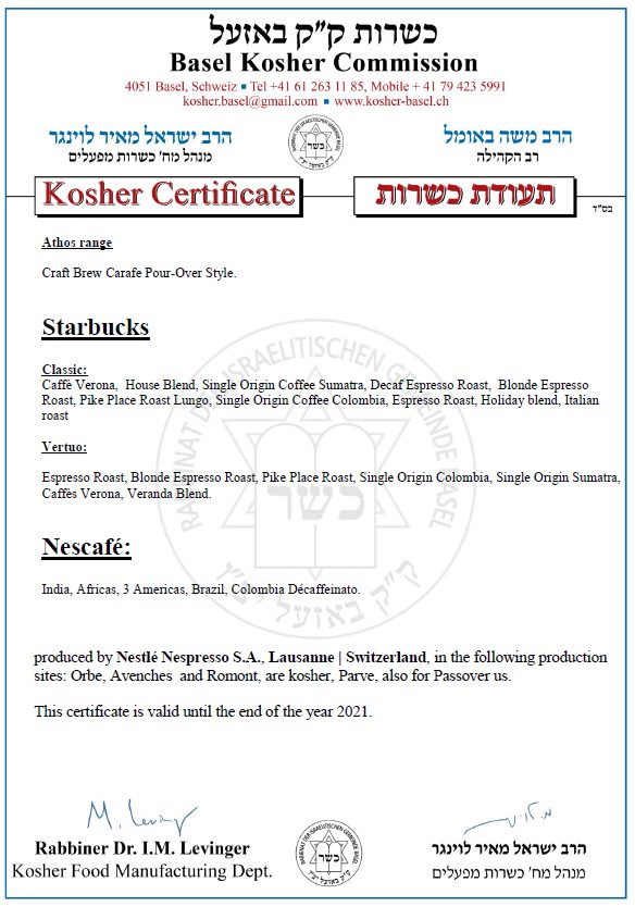 Nous ne connaissons pas de certificat validant un ou des produits Starbucks, mais un mode d'emploi par le cRc