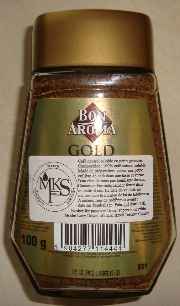 peu délicat. Mr Menahem Bendayan, inventeur du fromage qui devient Cacher le Pessa'h d'un coup d'étiquette magique, a fait fabriquer en mars 2010 un café soluble "Bon Aroma" dans une usine de Pologne. Suite à un litige financier l'entreprise polonaise (qui nous a contactés à propos de la fabrication d'un fromage fabriqué en Pologne et réétiqueté par la suite Cacher le Pessa'h par Mr Bendayan, avec l'accord du Rabbin Moshé Alloun) nous a renseigné sur les conditions de la fabrication de ce café. Il n'y a pas eu de visite de Rabbin ni avant, ni pendant la production. Les étiquettes de cacherouth ont été apposées en usine, à partir d'une maquette adressée par MBD, mentionnant "Kosher for passover, Under supervision Rabbi M.L., Dayan of Nahal Isroel, Toronto, Canada" [Nous essayons depuis une semaine d'obtenir le mail ou le fax de ce Rabbin pour obtenir par écrit son point de vue…] Le logo qui apparaît sur l'étiquette est le MKS soit "Mehadrin Kosher Supervision" L'usine produit du café "café" et du café de céréales. Il n'est pas possible de savoir qu'est ce qui a été fabriqué la veille, mais les lignes de production sont soigneusement lavées lors de type de production. [ce qui ne constitue pas une cachérisation en vue de Pessa'h à proprement parler] Il est à noter que MBD n'a pas posé ces questions avant de faire produire. Le produit a été réceptionné par Kineret Diffusion peu avant Pessa'h et apparemment n'a pas pu être proposé à la vente cette année. La visite pourrait se poursuivre en Tunisie, où le même MKS est réputé avoir surveillé des biscuits "Kif" pour Ruben's, NPK. |